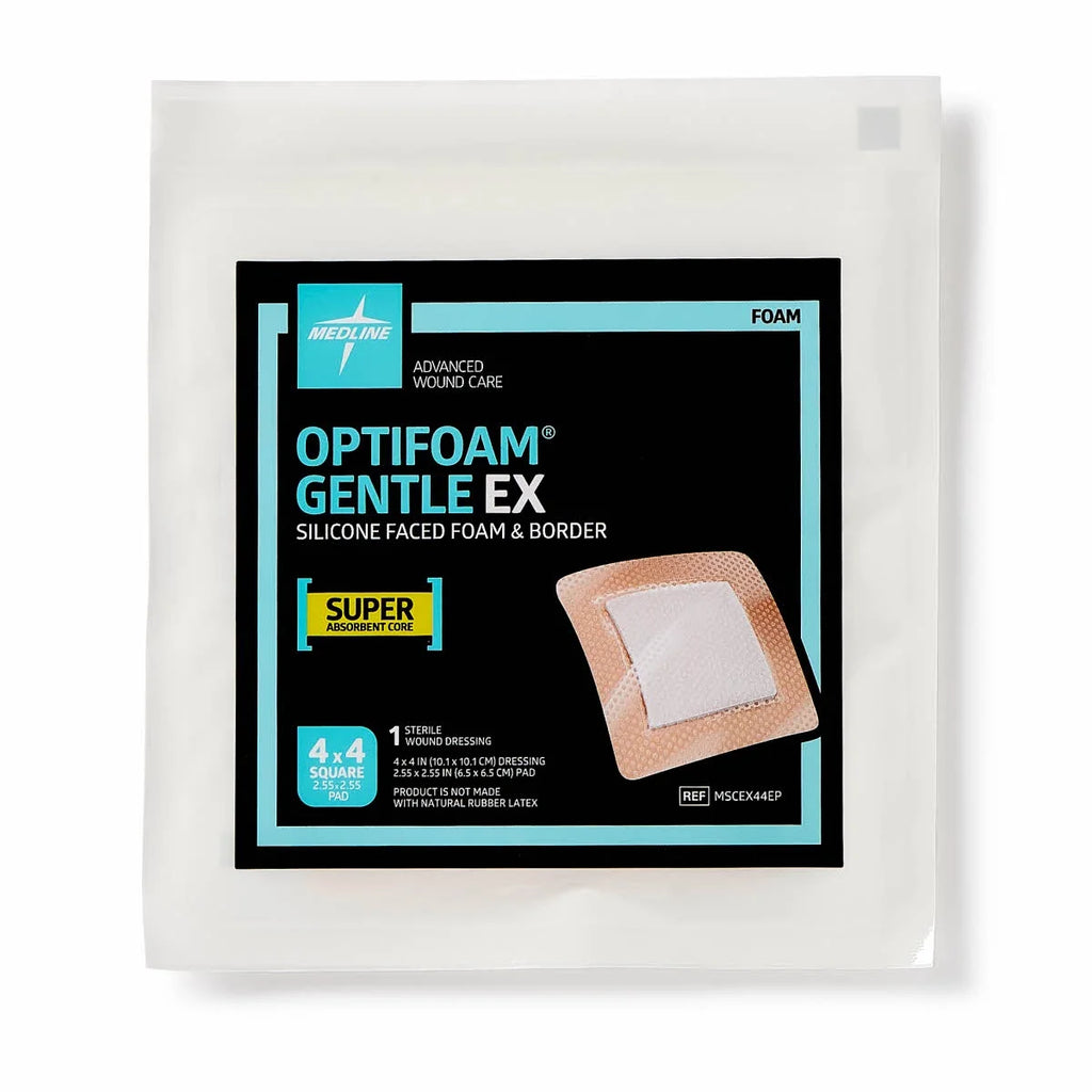 Optifoam® Gentle EX is a silicone-faced foam dressing with an adhesive border designed to manage wound exudate while protecting fragile skin. The super absorbent core helps maintain a moist wound environment, while the gentle silicone layer supports atraumatic removal.